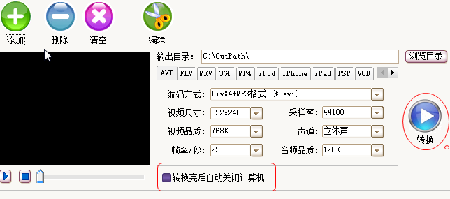 常见视频格式转换输出 AVI/DVD/MP4/3GP/WMV/ASF/FLV/MKV 等格式