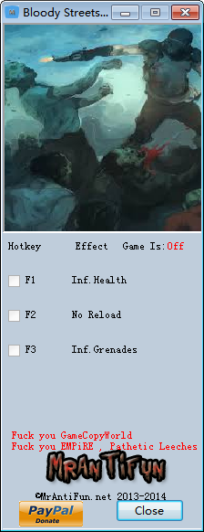血腥街道三项修改器是一款功能非常强大且绿色免费的辅助修改工具,提供无限生命、无需装弹、无限手雷等实用功能,让你有不一样的游戏体验,值得拥有哟!