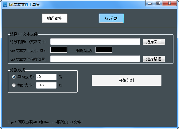 4、支持ANSI和Unicode编码,基本上涵盖了所有中文编码格式,分割之后不会出现任何乱码。