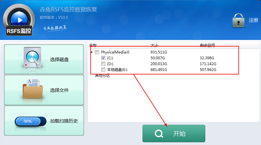 备注:左边勾选框是对磁盘进行全盘扫描,右边勾选框是对磁盘的剩余空间进行扫描