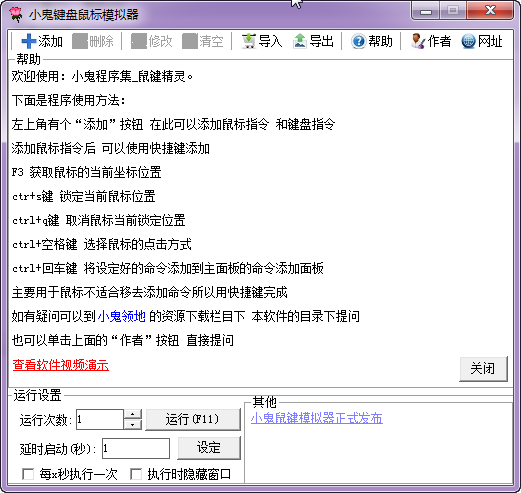 小鬼键盘鼠标模拟器是一款功能很强大的软件,能够解放自己的双手,通过模拟命令即可完成,值得拥有!