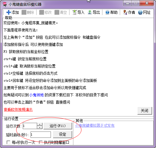 手动添加鼠标或键盘命令添加完后按下运行即可模拟人手对电脑的操作。