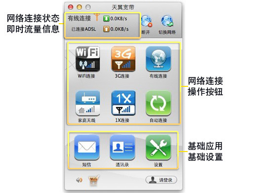 天翼宽带客户端Mac版是中国电信针对苹果Mac OS推出的宽带客户端软件,只要是Mac OS X 10.6及以上版本的操作系统,都可以安装天翼宽带客户端Mac1.0版,享受中国电信天翼宽带客户端轻松拨号、飞速上网的完美体验了。