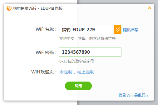 EDUP携手金山猎豹公司开发wifi管理软件。软件是金山猎豹开发的,金山是做杀毒软件的公司。插好网卡,下载下面的管理软件安装后,自动云端安装驱动,自动设置wifi。管理软件可以管理连网的设备,更改wifi连接名称和密码,支持中文名称。