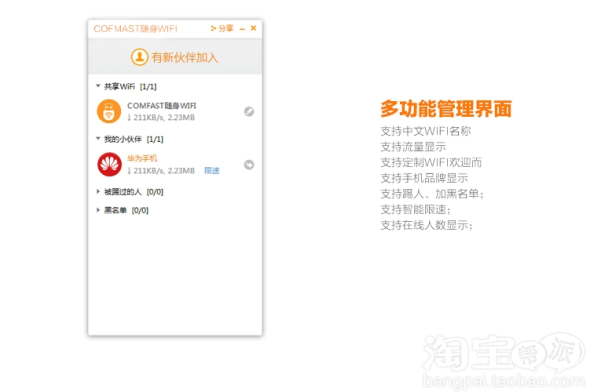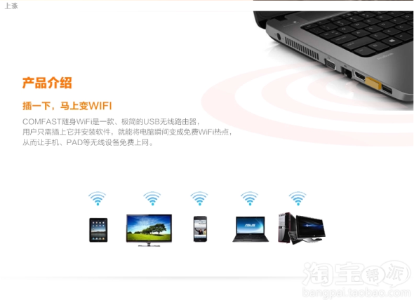 COMFAST猎豹合作版随身WIFI支持WinXP/Win2003/Vista/Win7/Win8适应于COMFAST系列所有随身WIFI产品,如:CF-WU715N CF-WU720N CF-WU730A CF-WU735P等。