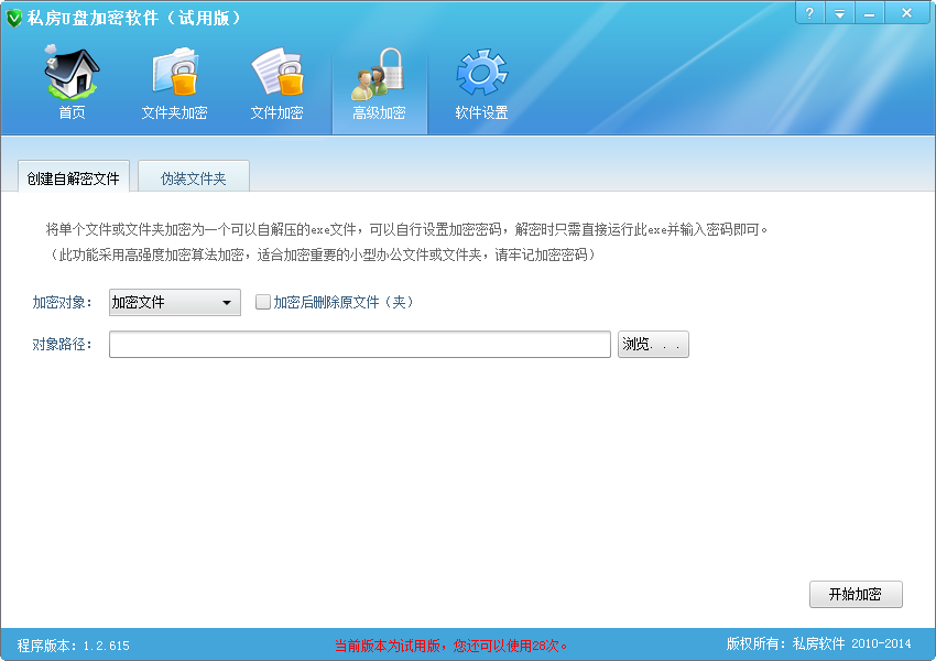 高级加密功能可为您提供了创建自解密文件、文件夹伪装等加密保护功能。