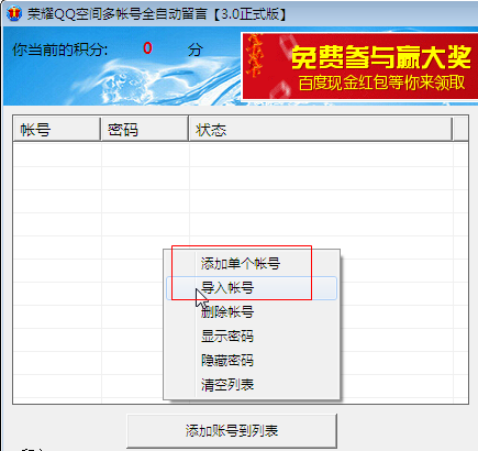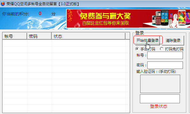 荣耀QQ空间多账号全自动留言是款最新研发出来专门针对空间留言的软件,最大的优点就是只要你设置好之后把他最小化,它就在后台自动把你刷,不会暂用你很多的时间和系统资源,确实是很强大的软件!