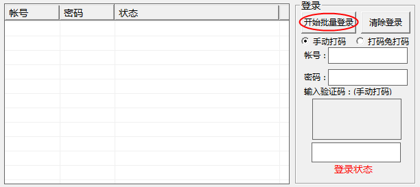 2、成功添加到列表后,点击开始批量登录按钮,既可成功登录