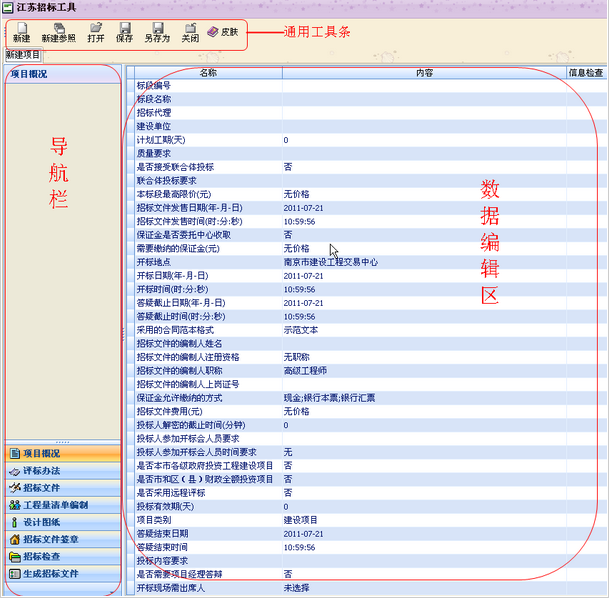 进入项目概况界面在右侧编辑区内,输入您该次招标工程的详细信息及投标要求。