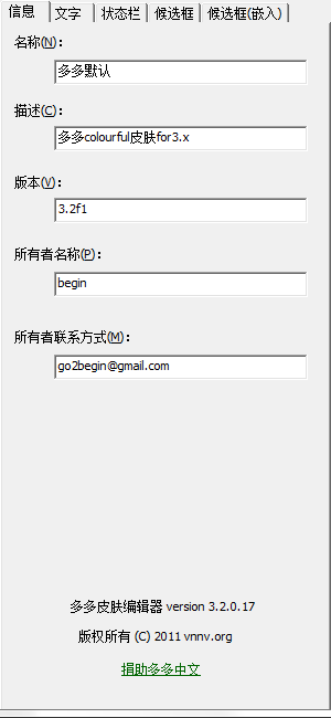 多多皮肤编辑器是一款便捷免费的输入法皮肤编辑工具,大家平时在网上下载的各种漂亮的输入法皮肤,很多都是由使用者自己制作的,本软件界面亲切、友好,编辑的内容所见即所得,方便大家快捷的进行各种皮肤的编辑制作。