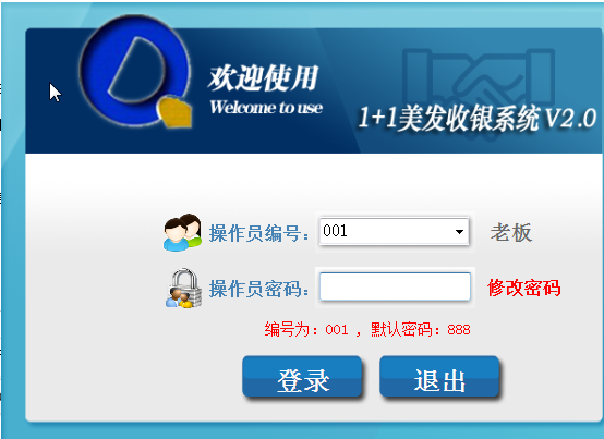 默认员工003初始密码003(本编号具备常用的收银功能,建议收银员使用)