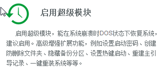 5、 启用超级模块,能在系统崩溃时DOS状态下恢复系统,建议启用