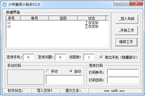 本软件可实现查密保(三问),手机(隐藏部分),添加自动打码和手动打码,统计数量,多线程,等等功能