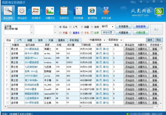 现在现实中做生意都没有网上的好做点,这样就是都喜欢在淘宝上做生意,但是又有很多人不知道如何做生意,这时就可以选择用风影淘宝营销助手,在最快的时间让你学会各种像淘宝排名优化,淘宝流量互助优化等最新的网络营销方式,让你成为淘宝销售达人。