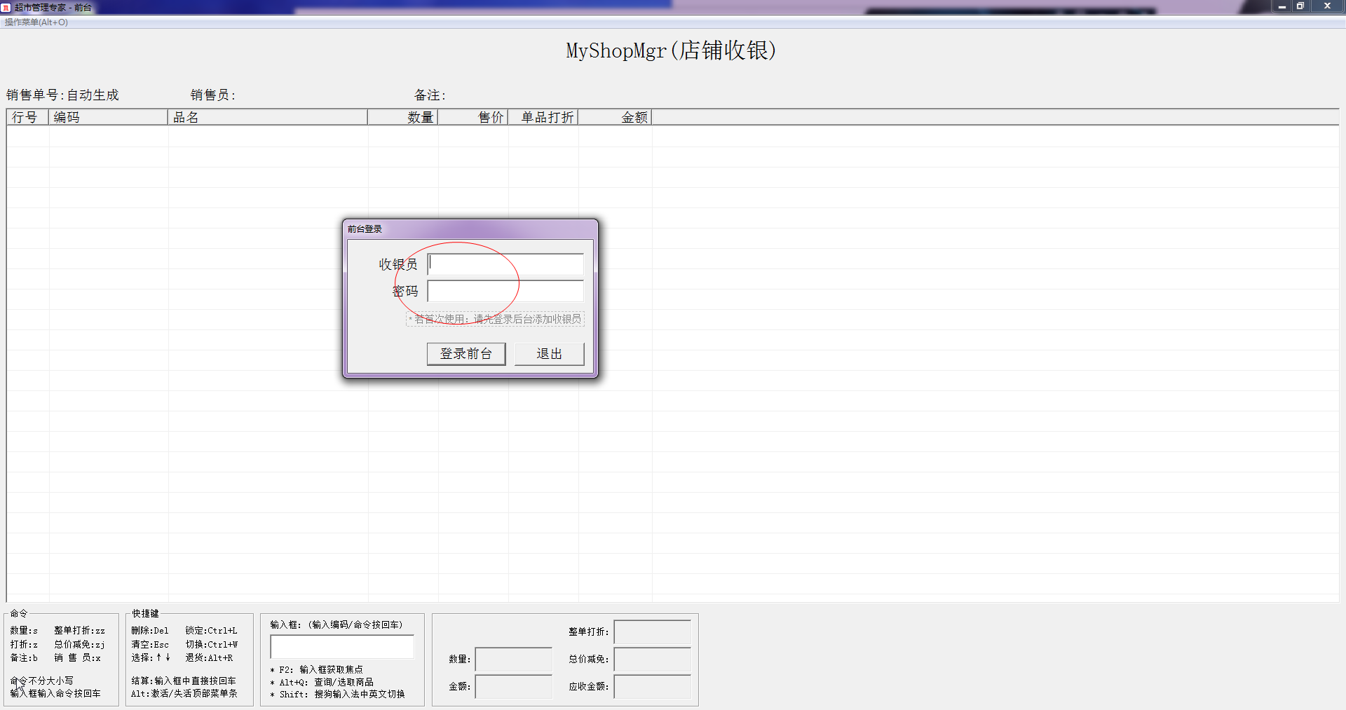 1.快捷键:删除:Del;清空:Esc;上/下一行:↑/↓;输入框获取焦点:F2;结算:输入框中直接按回车;锁定:Ctl+L;切换收银员:Ctrl+W;查询/选取商品:Alt+Q;销售单查询/退货:Alt+R;复打上一单:F5;开钱箱:Ctrl+B。