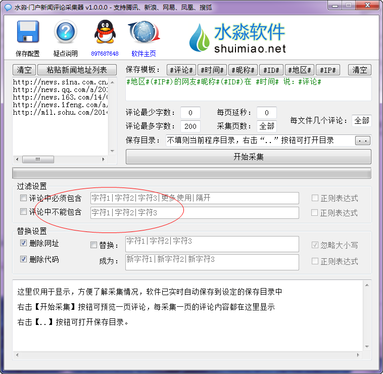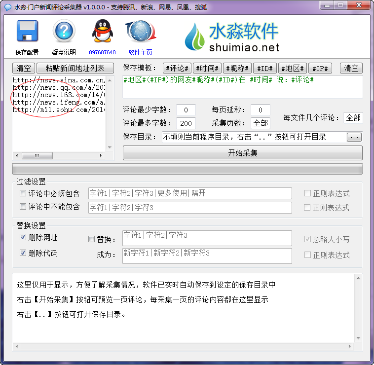 4、可以放新闻地址也可以直接放评论地址(程序自动识别),一行一个