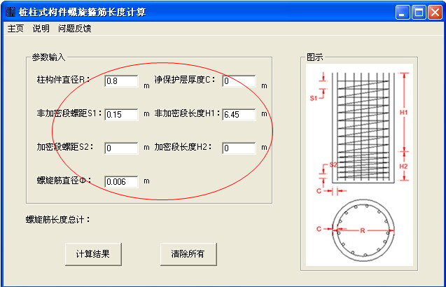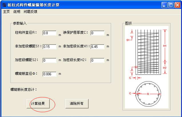 桩柱式构件螺旋箍筋长度计算的使用方法