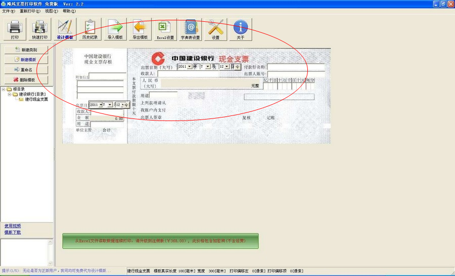 飚风支票打印软件为绿色软件、拷贝即可运行、不需要操作系统打补丁、不需要重启系统