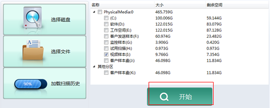备注:左边勾选框是对磁盘进行全盘扫描,右边勾选框是对磁盘的剩余空间进行扫描