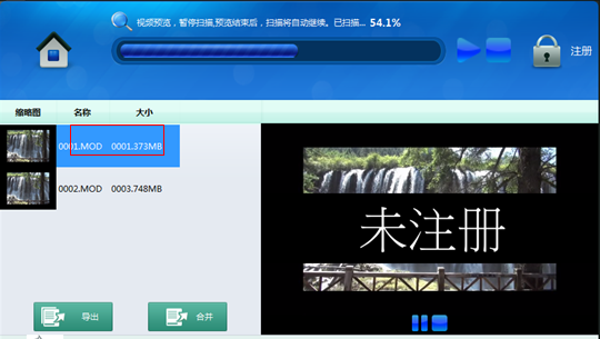 3、“扫描”界面中显示扫描恢复到的MXF视频