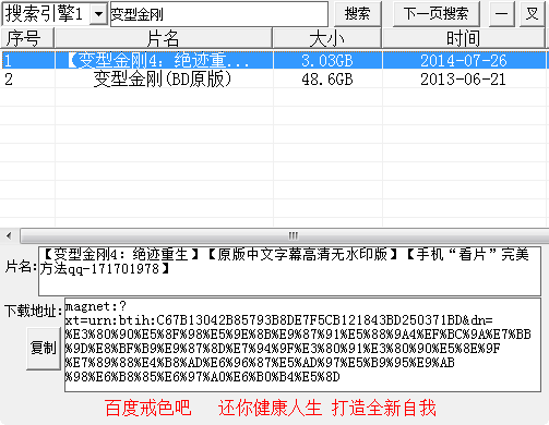 西瓜种子搜索器是一款便捷实用的p2p种子搜索器,因为严打快播被封掉以后各种视频的资源都没有那么好找了,通过本工具能够快速便捷的搜索各种种子资源,便捷实用,有需要的朋友可以下载试试,再也不用担心找不要自己想要的视频资源了。