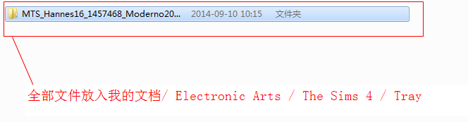 2.解压后的全部文件放入我的文档/ Electronic Arts / The Sims 4 / Tray