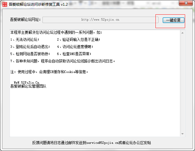 7、各种未知问题,程序会自动获取访问论坛线路诊断出访问日志。