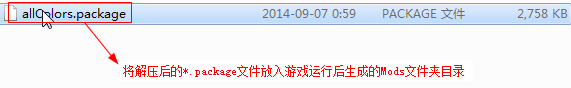 2.将解压后的*.package文件放入游戏运行后生成的Mods文件夹目录