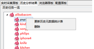 该面板会以树状结构显示所有搜索过得历史关键字,然后右键点击某关键字可以查询搜索过得记录结果,或者删除某个关键字对应的记录,如下图: