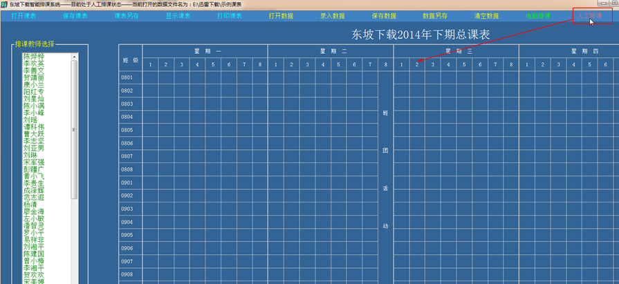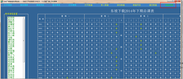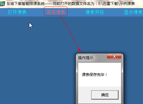 (3)点击菜单栏中的“保存课表”,可以把编排好的课表保存。