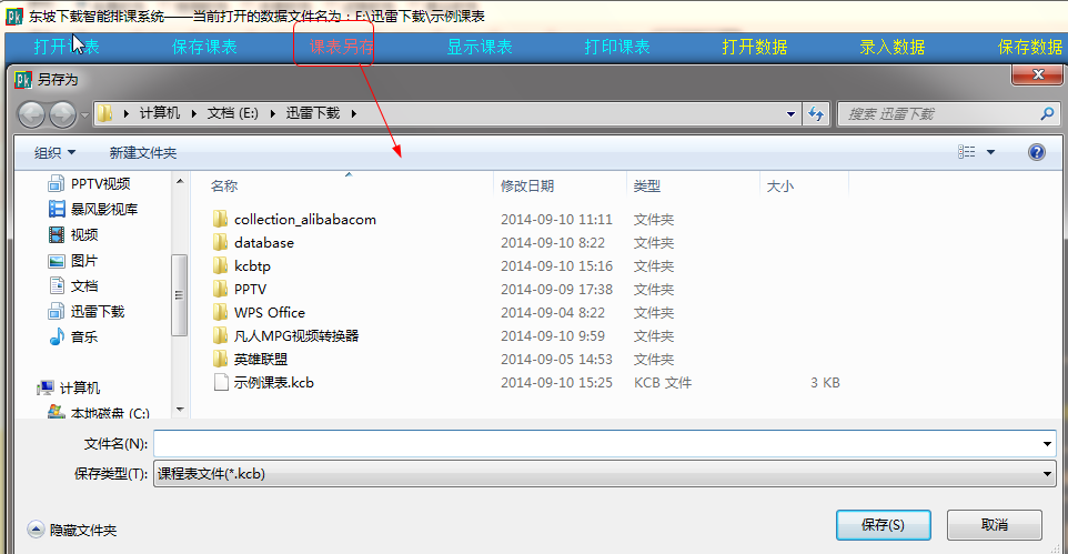 如果以后还要在本软件中打开,请保存为.kcb格式(保存为.kcb格式时连同保存了所有排课数据)。