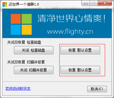 还世界一个清静(系统提示关闭)是一款小巧实用的系统扫描并修复磁盘提示关闭工具,通过本工具能够帮助大家直接关闭这些提示,方便快捷,不需要手动去修改各种文件,一键进行关闭,有需要的朋友可以下载试试。