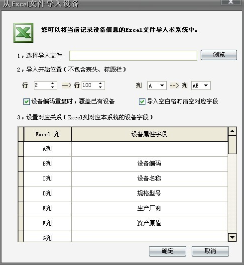 3、软件中支持从Excel导入设备信息,软件对导入格式没有要求,用户只需要在导入时选择好Excel列的对应关键,就可以进行导入。如果用户电脑未安装微软Office软件,或安装不完整,可以另存为Txt格式,采用txt文件进行导入。