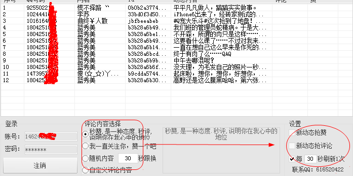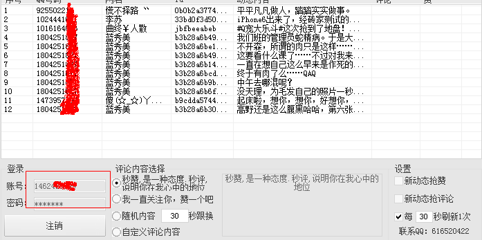 4、可指定QQ账号进行动态秒赞秒评论