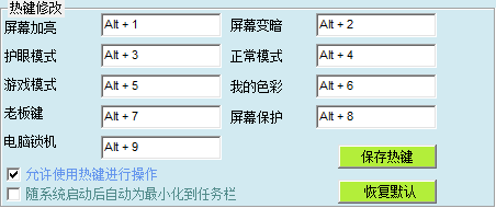 设置:为热键进行设置、恢复,开启或关闭热键。