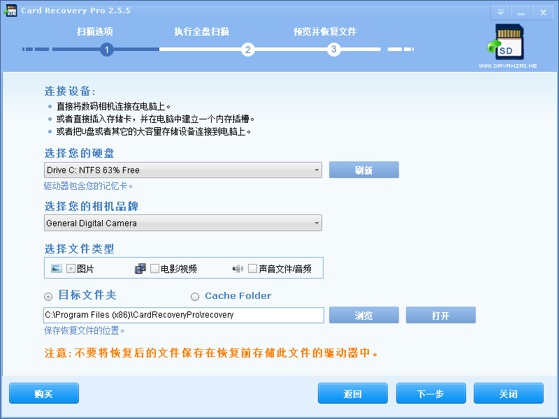 Card Recovery Pro是一款操作简单的内存卡恢复软件,它可以有效恢复基本所有内存卡中因误删、损坏和格式化而被删除或丢失的照片、音频、视频和其它的一些多媒体文件。该软件恢复操作安全无风险,它在内存卡上只进行“只读”操作,它既不会移动和删除卡上的数据,也不会将其修改来防止进一步损坏或者覆盖。