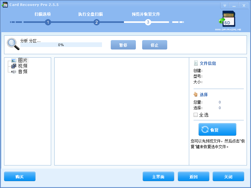 基于文件类型特征和此软件的高级文件恢复功能,对丢失或被删除的文件进行恢复。