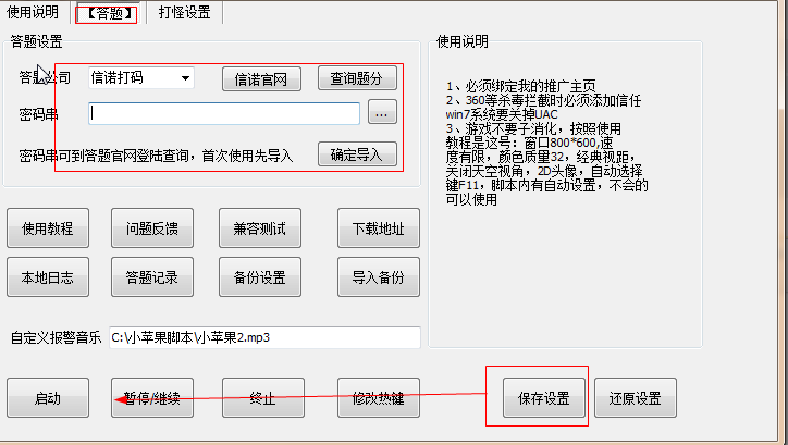 1、先进入游戏,之后打开这个工具,选择“答题”之后,进行一系列的设置,“保存设置”之后,就点击【启动】