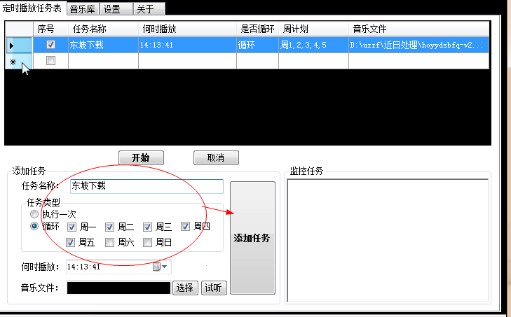 1、添加定时播放任务表,每个播放任务均包括