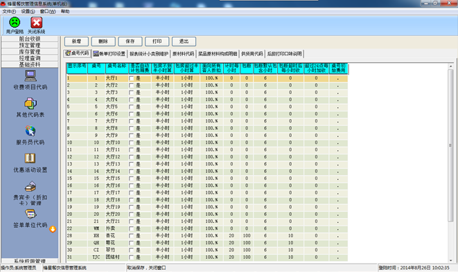 3、设置桌号代码,账单打印设置,报表统计小类维护,原材料代码等。设置桌号代码必须设置。其他根据需求自行决定是否设置。