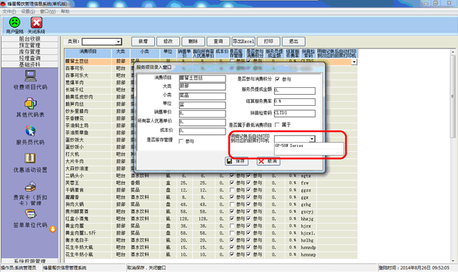 2、设置好打印机。例如这个菜是需要打印到厨房。就选择放置在厨房的打印机。如果是酒水就可以设置为吧台或者仓库的打印机。
