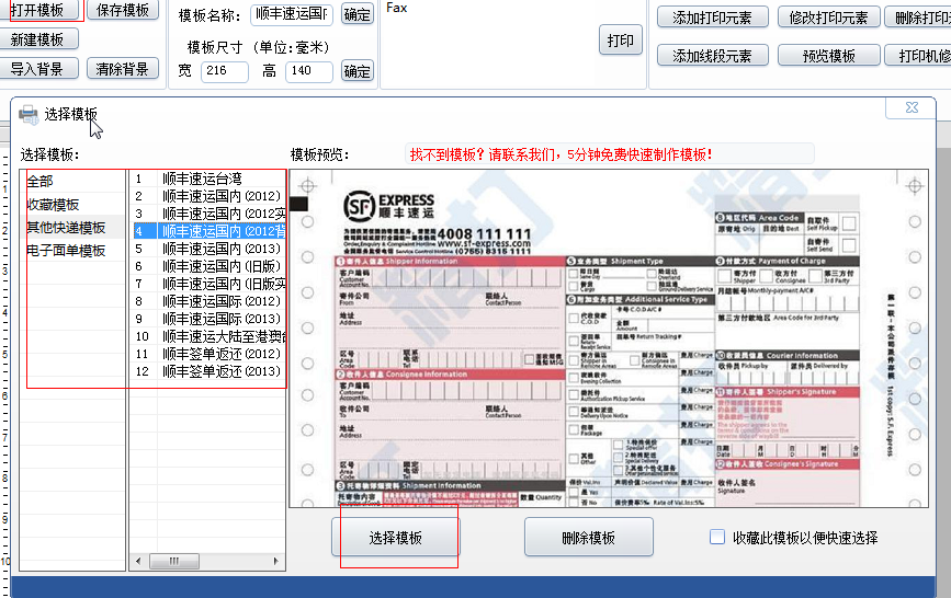 5.支持快递模板在线更新,最新顺丰快递单模板同步更新。
