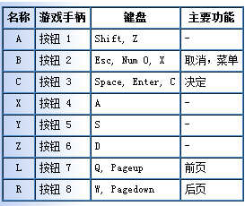 各个按钮(A,B,C,X,Y,Z,L,R)对应的键盘和具体功能如下所示。游戏手柄的 A,B,C 等 按钮也是如此对应,所以使用起来会更加容易。
