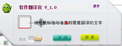 1、使用鼠标拖动准星到需要翻译的文字即可。