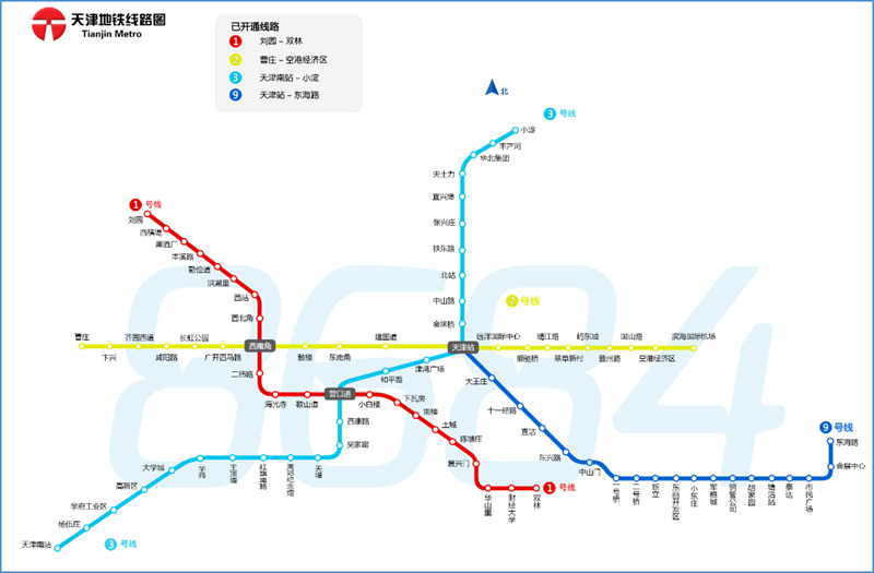 天津地铁线路图包含了已经通车的天津轨道交通1号线、2号线、3号线、9号线。天津地铁是中国大陆第二个地铁系统(即天津是中国大陆第二个拥有地铁系统的城市),天津轨道交通的目前开通的总里程为135千米。