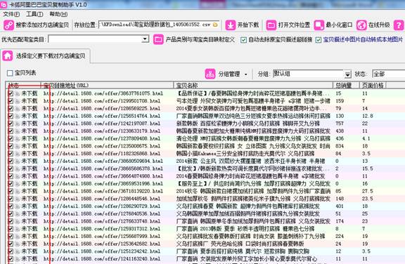 卡狐阿里巴巴宝贝复制助手是一款用于将阿里巴巴商家的店铺产品复制到淘宝店铺的批处理工具,它提供了快速搜索阿里巴巴店铺宝贝,快速下载宝贝并生成淘宝助理数据包功能,生成的淘宝数据包可以直接导入淘宝助理。