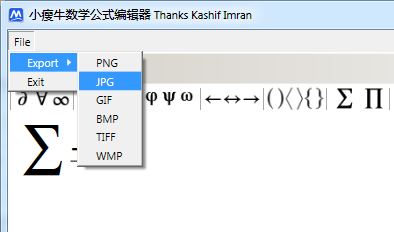 2、生成的数学公式可以导出为图像,点击File——Export,选择图像格式就可以导出