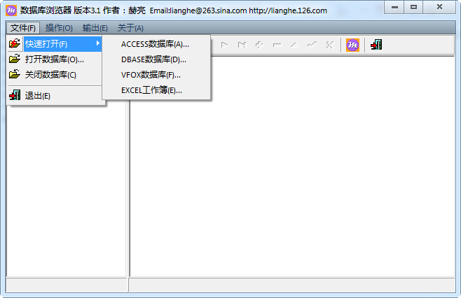 启动软件后,点击“文件”,选择“快速打开”,然后选择数据库类型,选择要打开的数据库文件即可。