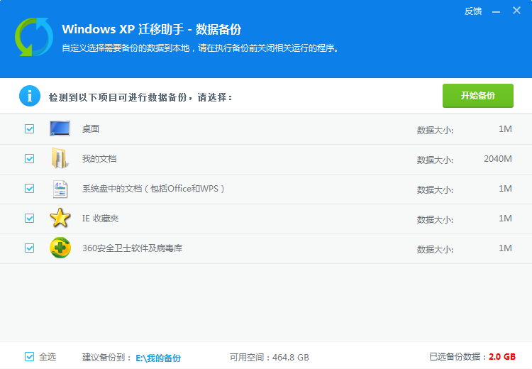 Windows XP迁移助手是一款绿色免费的个人数据备份还原软件,非常适合在重装系统前备份重要的个人资料,比如我的文档、桌面资料、浏览器收藏夹,甚至你的QQ聊天记录等!备份的资料会生成一个.bxp后缀的文件,即使软件程序不见了,也可以下载完整的360杀毒程序还原原来的资料。