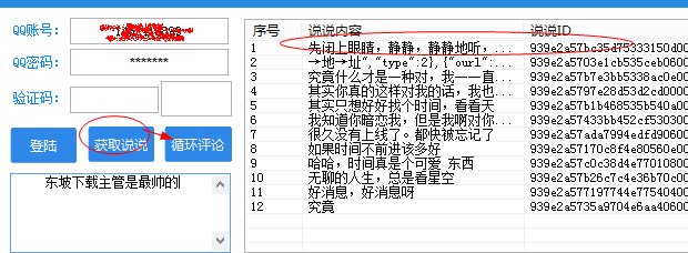 2、选择“获取说说”,输入想要评论的内容,在选择你要评论的说说,点击【循环评论】
